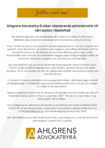 Ahlgrens Advokatbyrå söker vikarierande administratör till vårt kontor i Skellefteå. Annonsen finner du nedan.